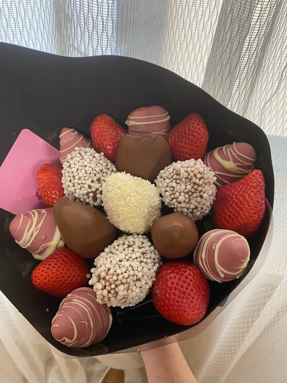 Заказывал доставку привезли вовремя,букет превзошёл все ожидания,клубника была свежая и очень вкусная,так что всем советую)