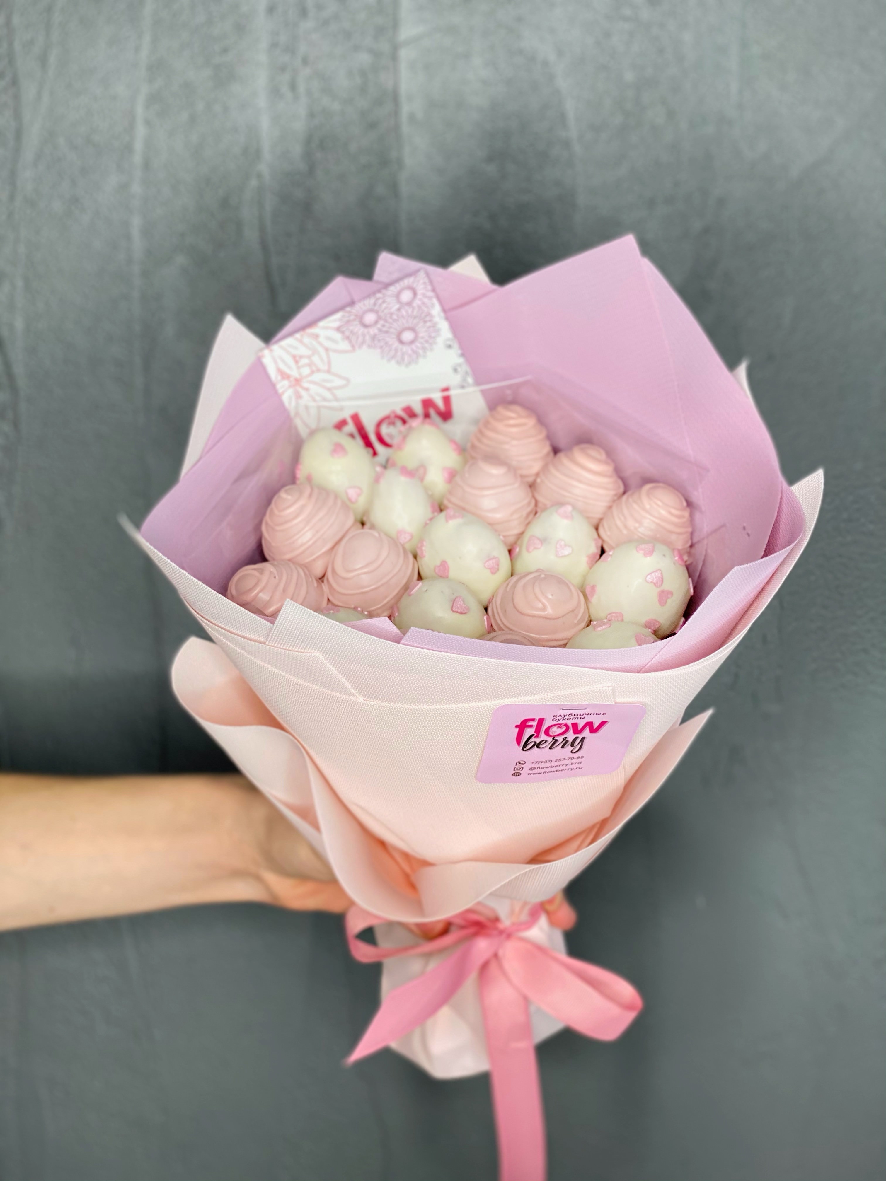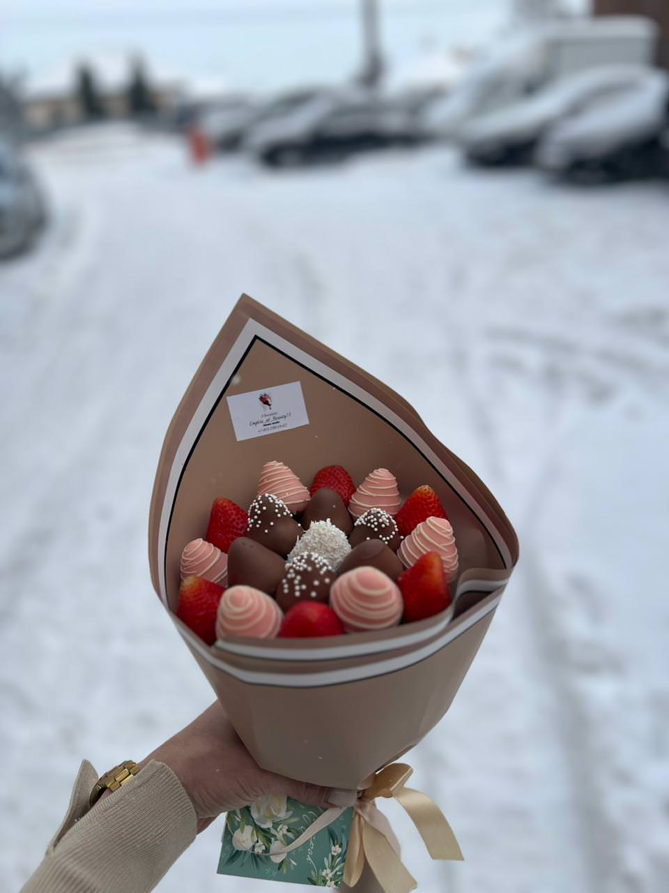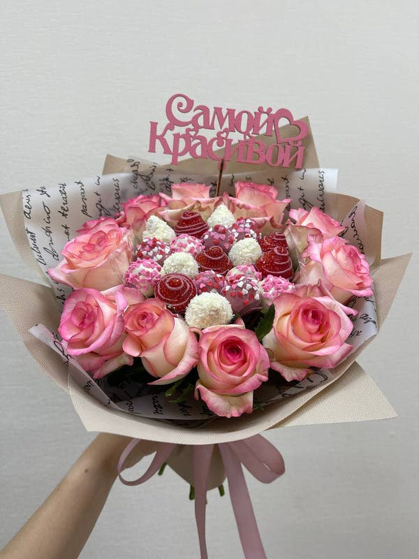 Сестренка в восторге! ???...Оформляла заказ клубничного букета на сайте, мне профессионально помогли с выбором букета для сестренки!